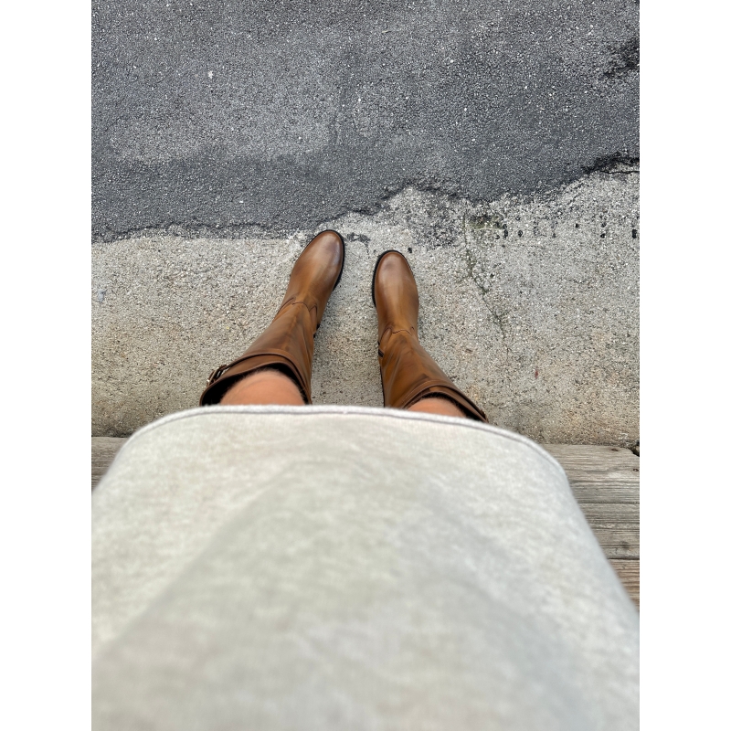 Botte tube simple et élégante avec zip et bride réglable avec boucle dorée