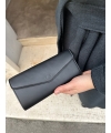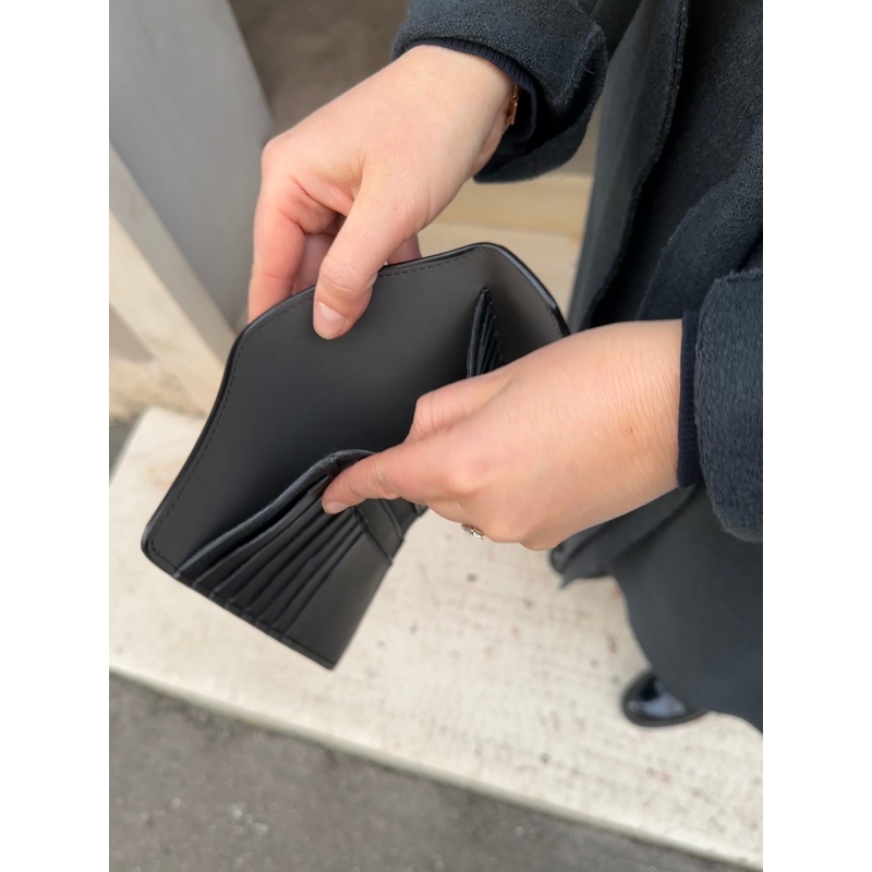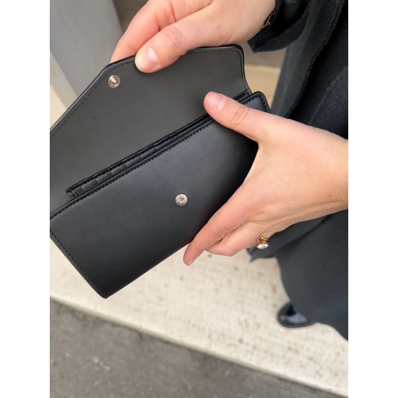 Portefeuille vegan lisse noir pour documents et porte-cartes