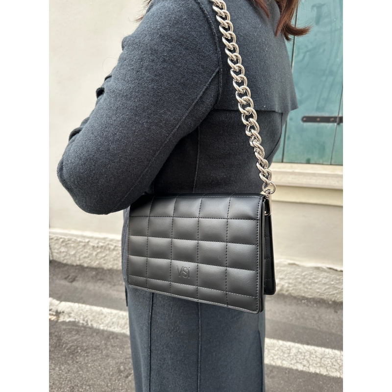 Sac à main noir Clutch Woman design matelassé vegan