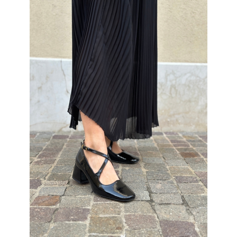 Escarpins vernis noirs à décolleté en c?ur