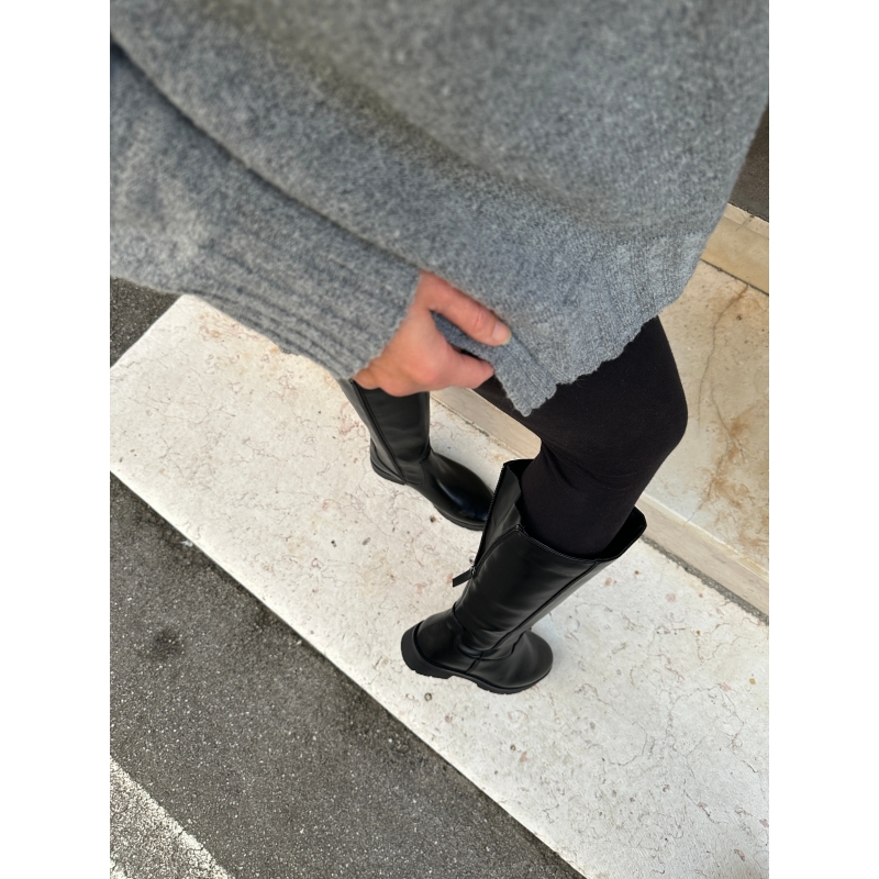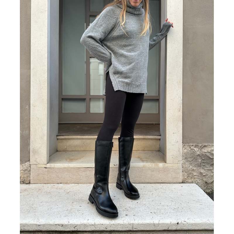 Botte mi-mollet femme noire avec zip latéral sur toute la longueur