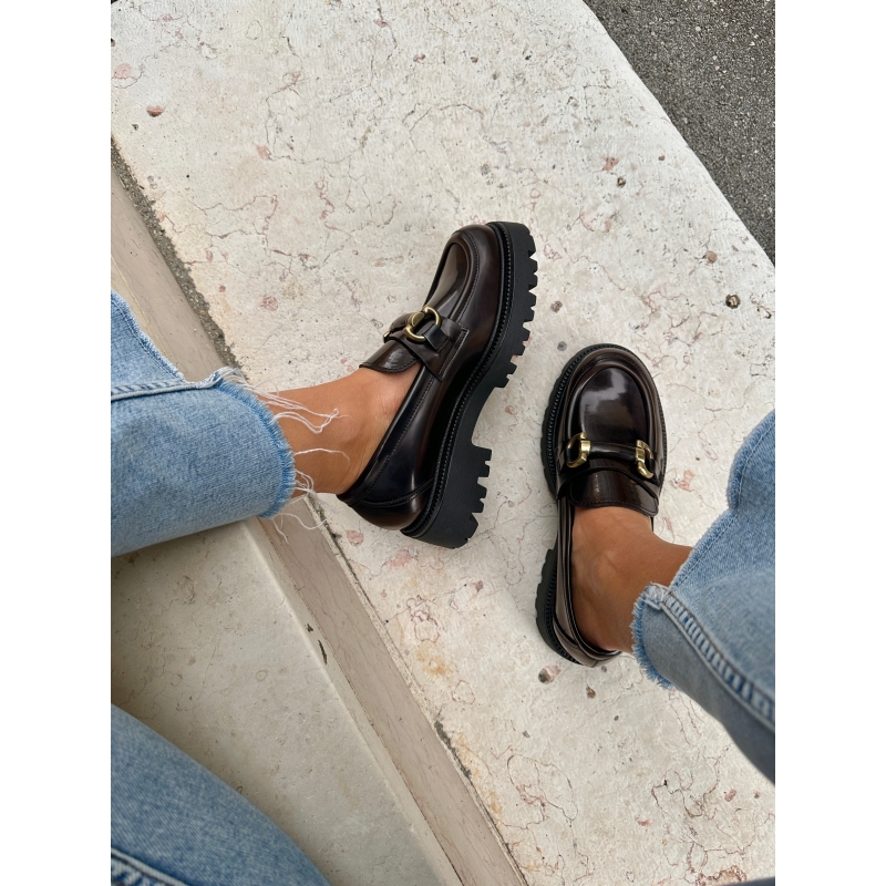 Mocassin vegan marron foncé pour femme à semelle épaisse