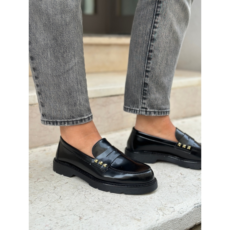 Mocassin vegan noir verni
