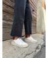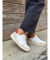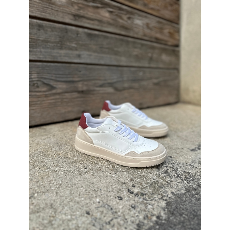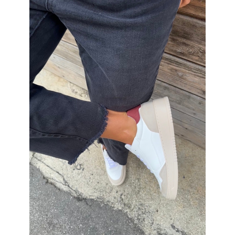 Baskets blanches en maïs vegan avec talon rouge et empiècements effet daim beige