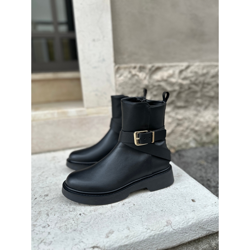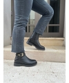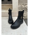 Chaussures pour femmes, bottines motardes à bout rond et haut