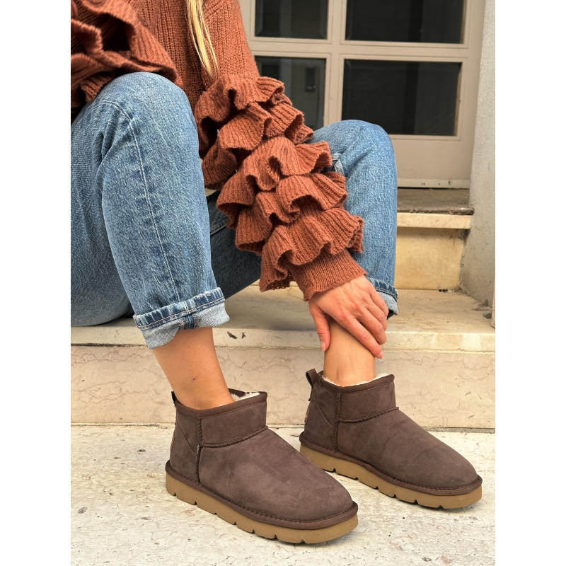 Bottines en peluche marron foncé avec rembourrage en fausse fourrure