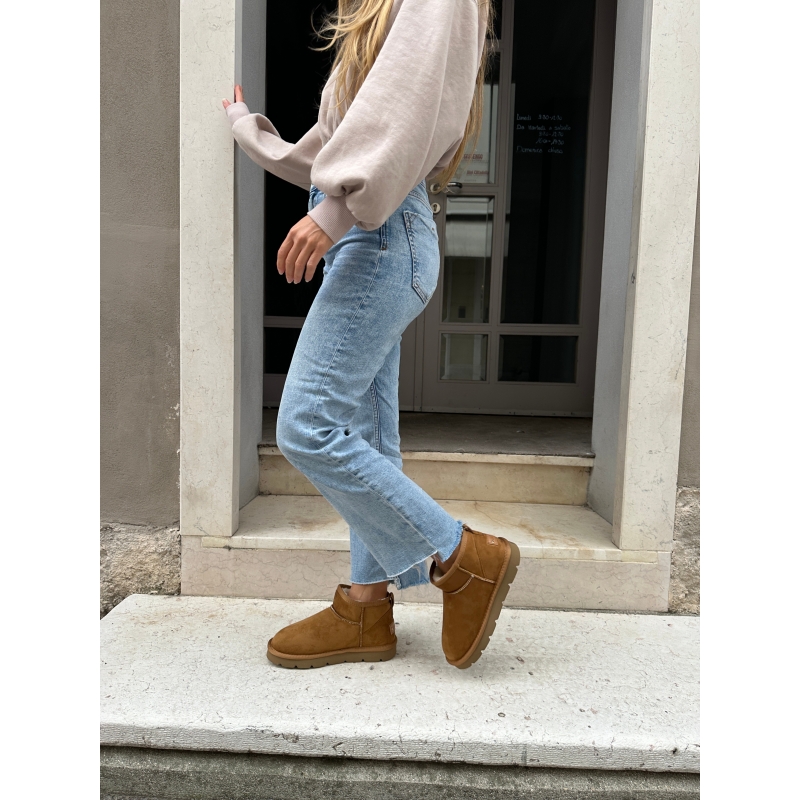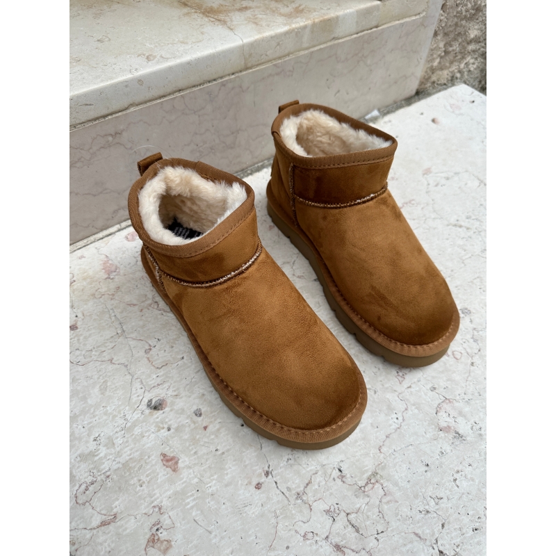Bottines en peluche couleur cuir marron avec rembourrage en fausse fourrure