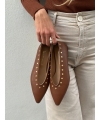 Chaussures basses couleur cuir avec clous dorés, modèle qui couvre la zone des orteils