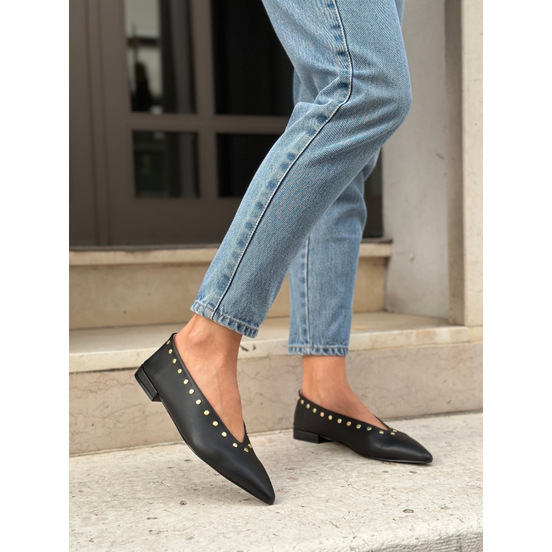 Ballerines vegan noires à clous respectueuses de l'environnement