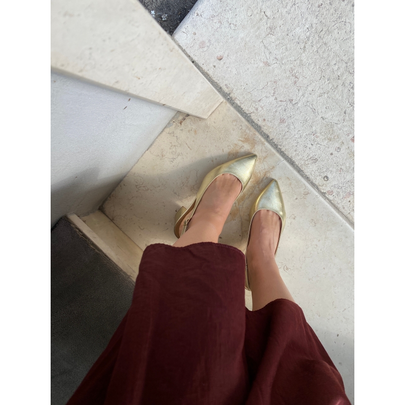 Fabriqué en Italie, empeigne en microfibre à effet métallisé doré