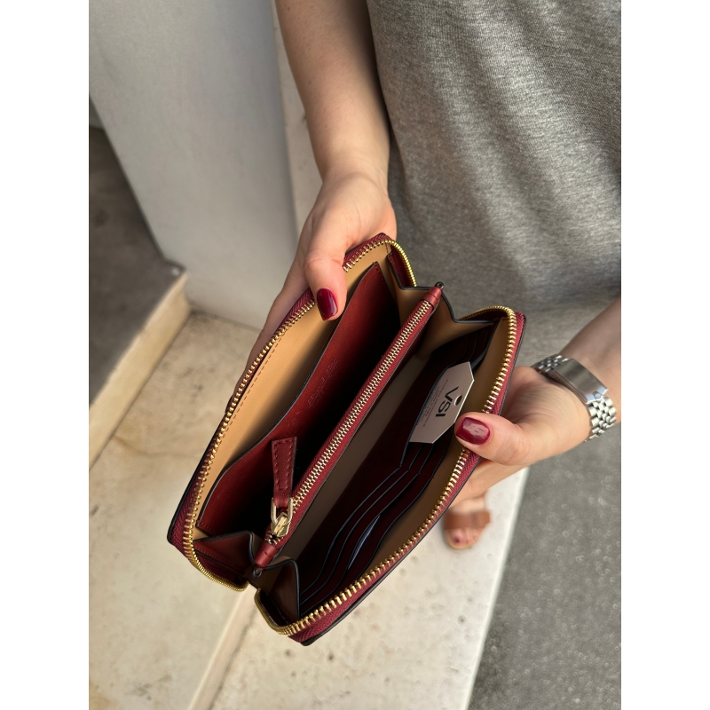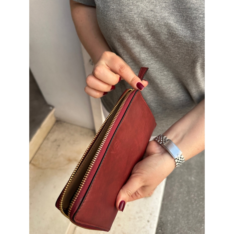 Portefeuille vegan accordéon rouge avec fermeture zippée sur trois côtés