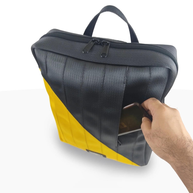 Chaque article est unique en son genre, la texture et le ton varient selon les matériaux recyclés utilisés.