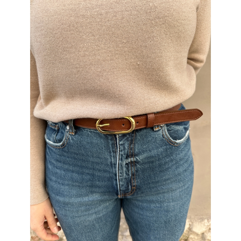 Modello con fibbia oro ovale allungata. Lunghezza regolabile.