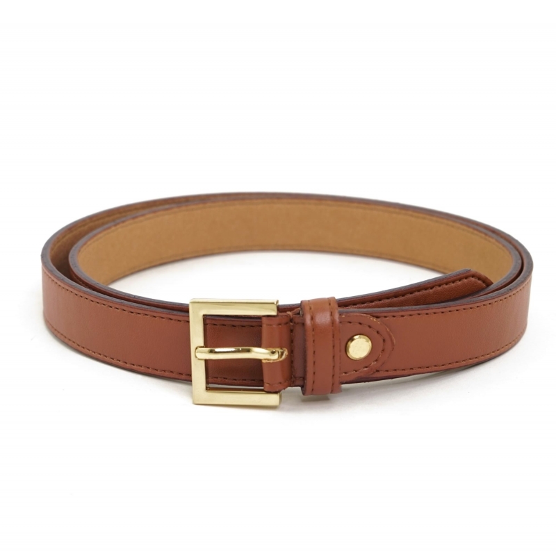 Cintura ecologica fina tinta cuoio con fibbia squadrata oro