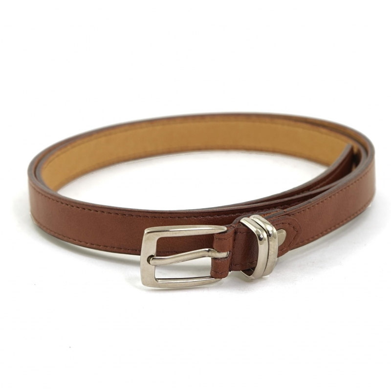 Cintura ecologica sottile tinta cuoio con fibbia argento e doppio passante metallico
