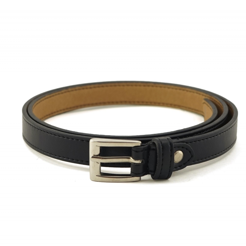 Cintura ecologica sottile nera con fibbia quadrata argento