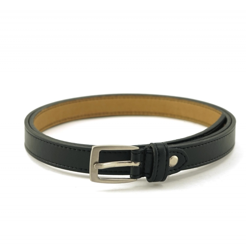 Cintura ecologica sottile nera con fibbia squadrata argento