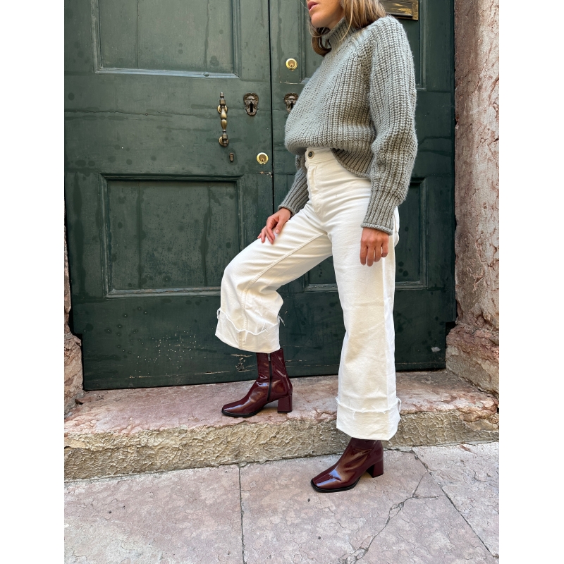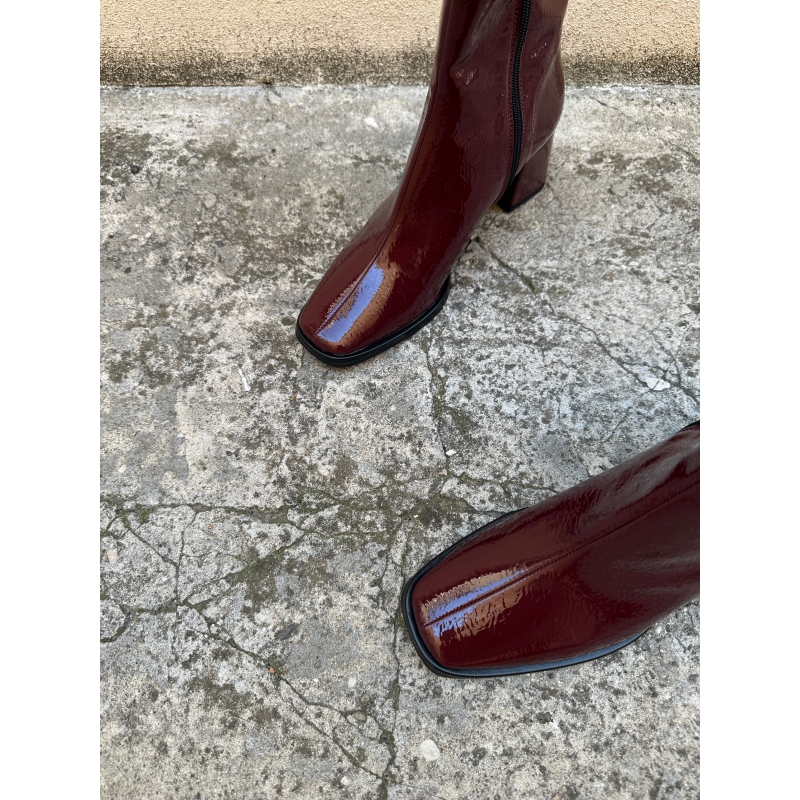 Scarpe Donna Tronchetti lucidi sopra la caviglia con punta squadrata