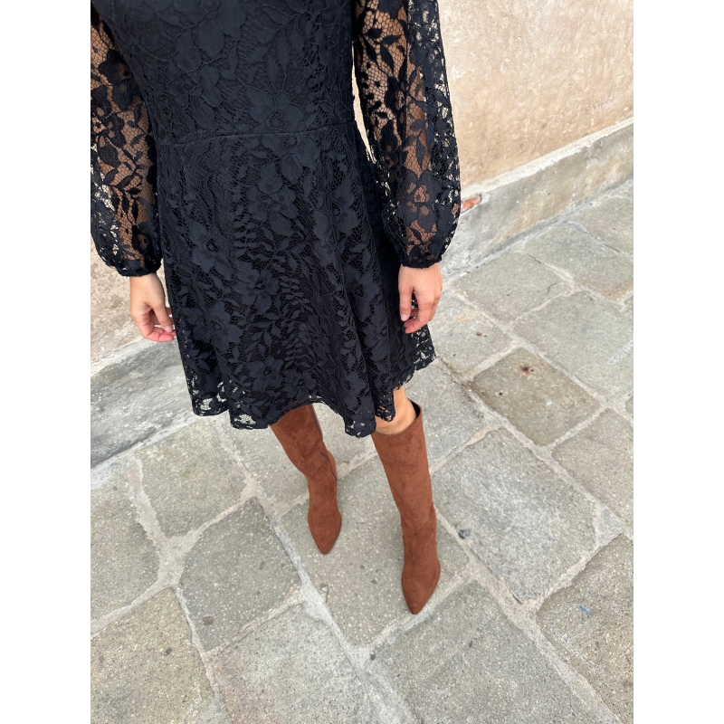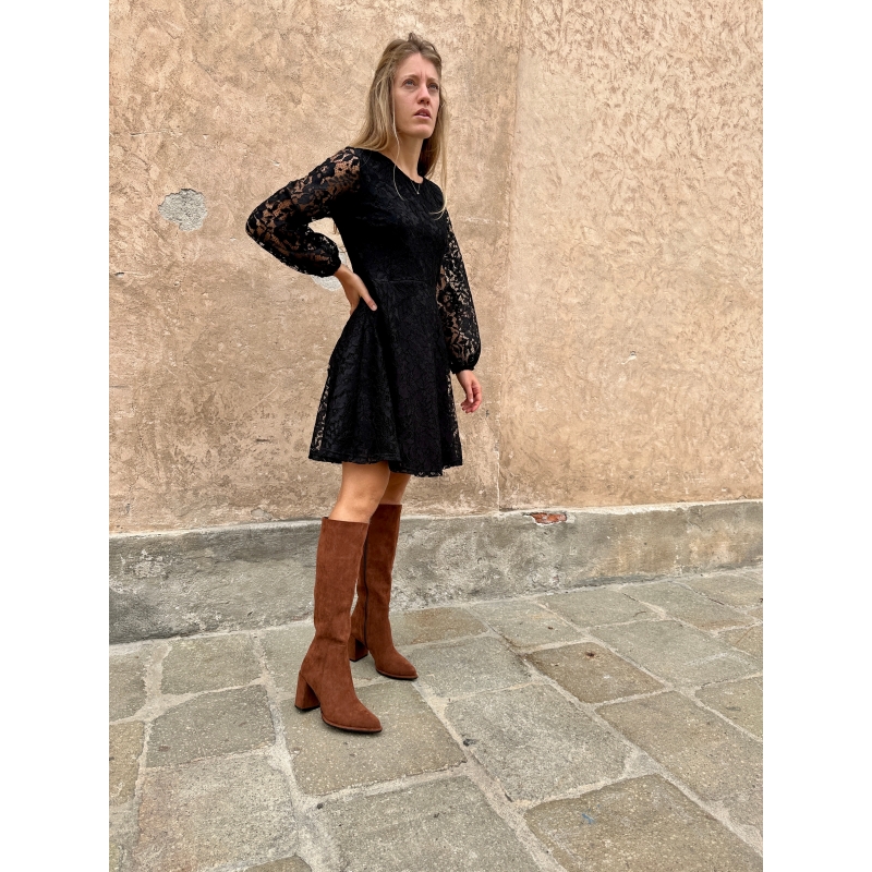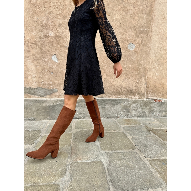 Stivale tinta cuoio vegan sotto al ginocchio con tacco largo