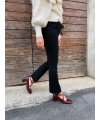 Modello con punta squadrata e doppio cinturino intrecciato sul collo del piede