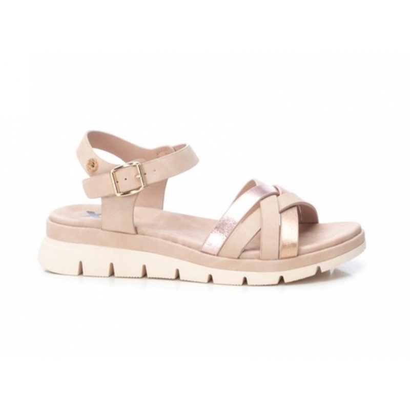 Sandali con zeppa donna con fasce incrociate nude e rosegold
