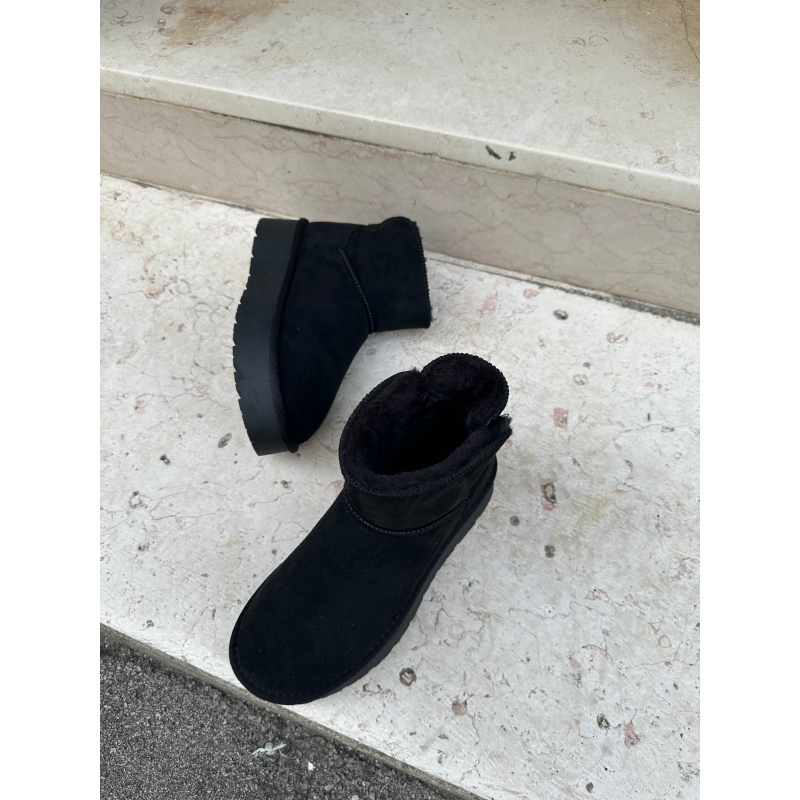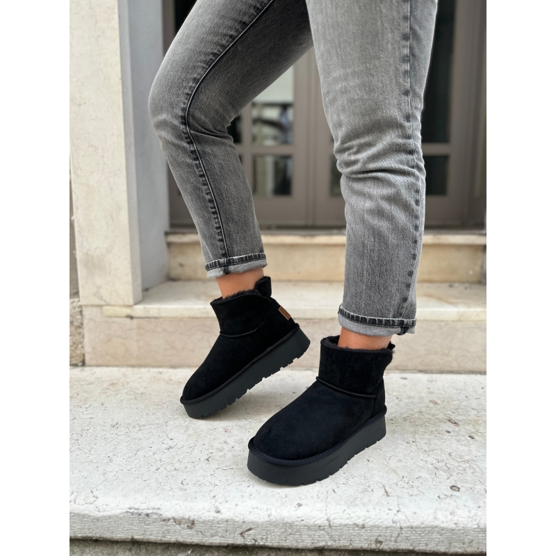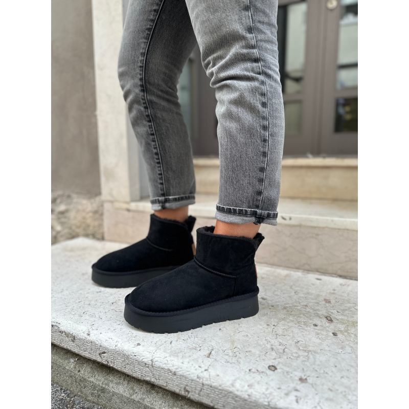 Stivaletti chunky peluches neri imbottiti finto pelo