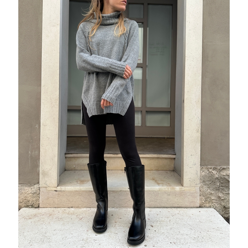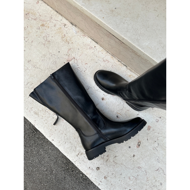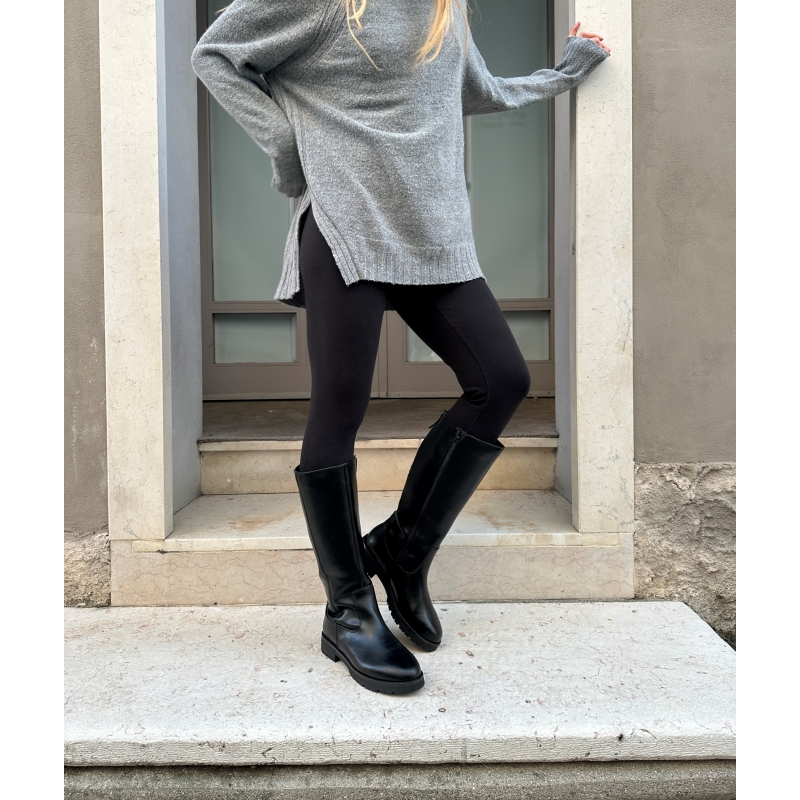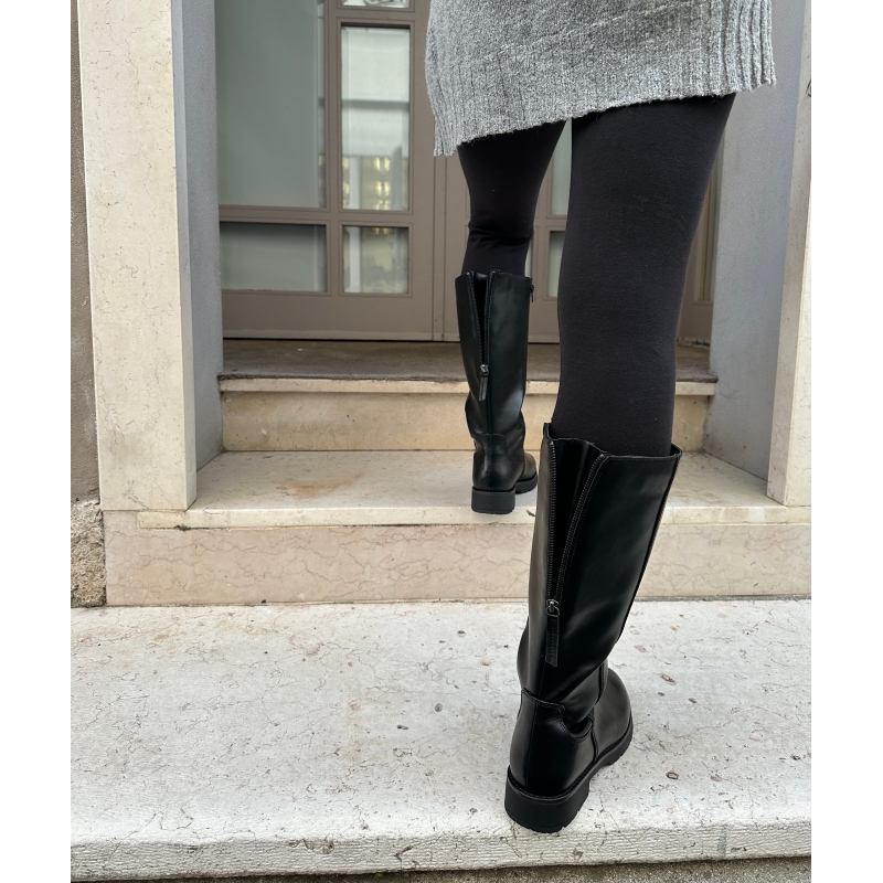Stivale al polpaccio donna nero con cerniera laterale su tutta la lunghezza