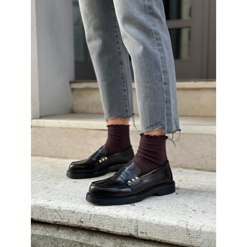 Modello stile college con borchiette oro