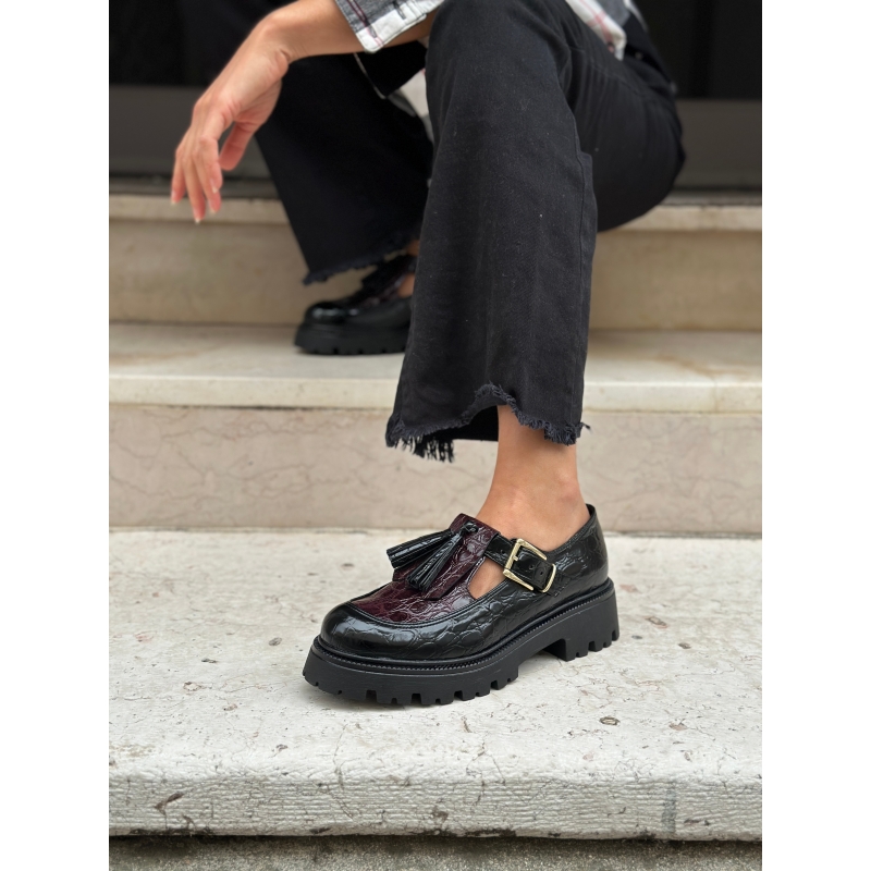Scarpe bebè nere e rosse verniciate