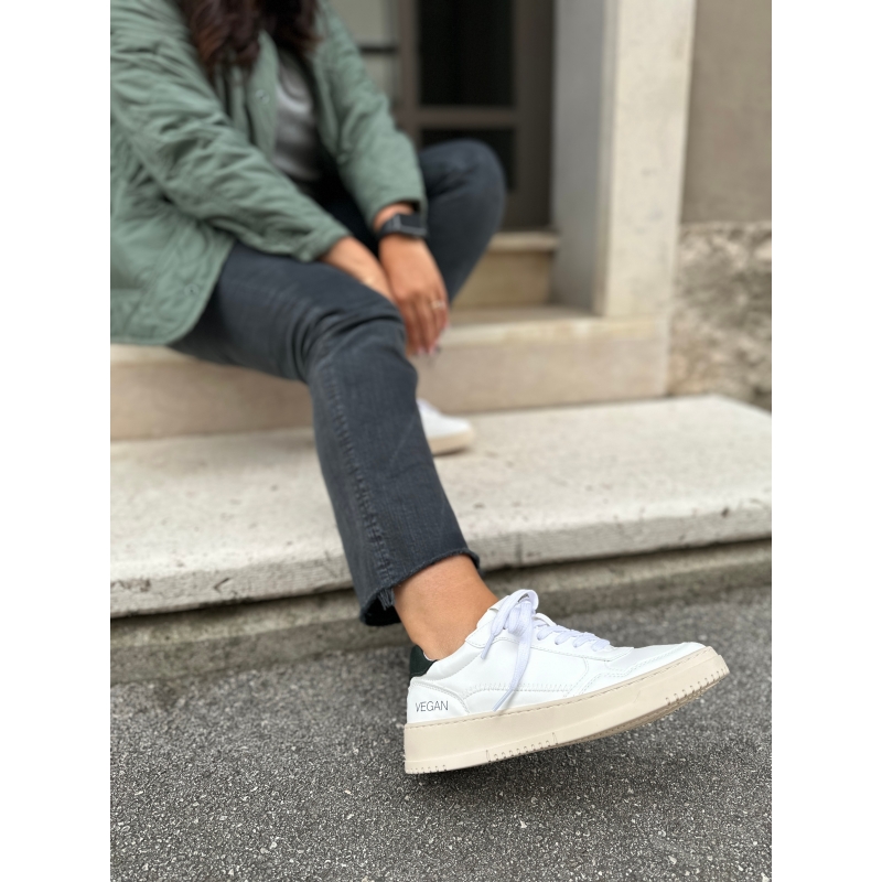 Sneakers donna minimal bianche ecologiche in mais con talloncino verde scuro