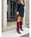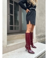 Stivali donna al ginocchio tinta rosso bordeaux verniciato