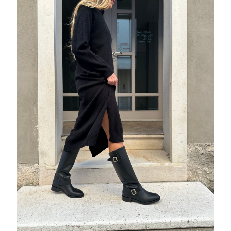 Stivale simil biker a tubo sotto il ginocchio senza zip