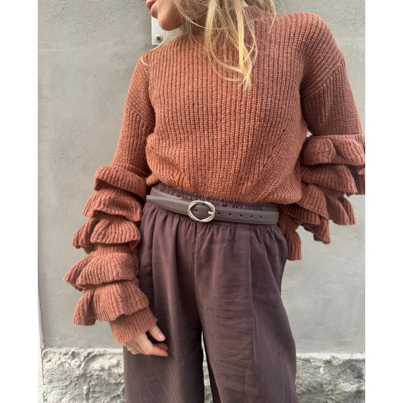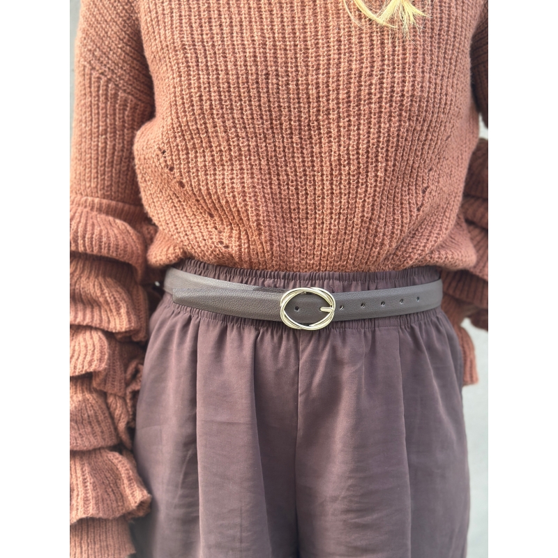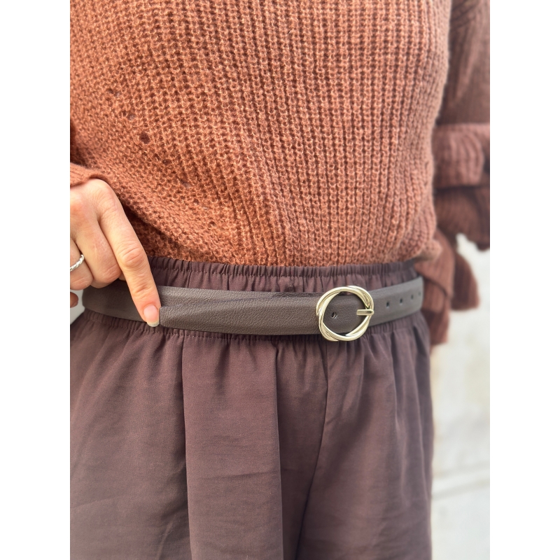 Modello con fibbia rotonda intrecciata dorata con rilievi. Lunghezza regolabile.