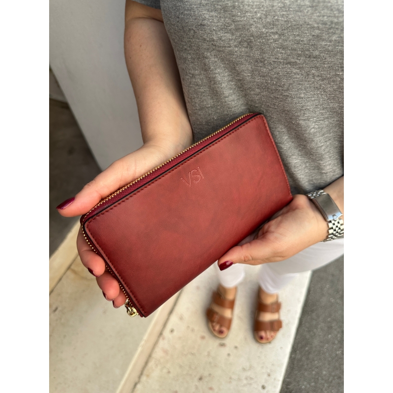 Wallet vegano rosso a fisarmonica con chiusura a zip su tre lati