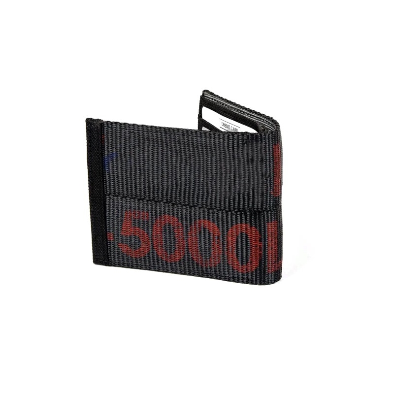 Portafoglio vegan riciclato nero con scritte rosse