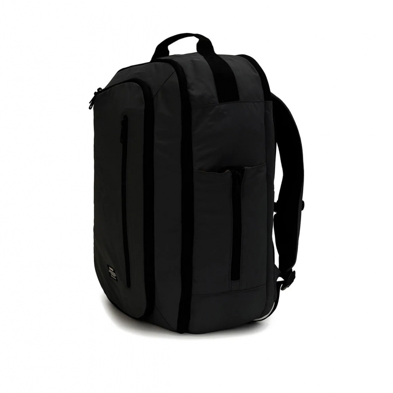 Zaino in nylon riciclato nero resistente all'acqua idrorepellente